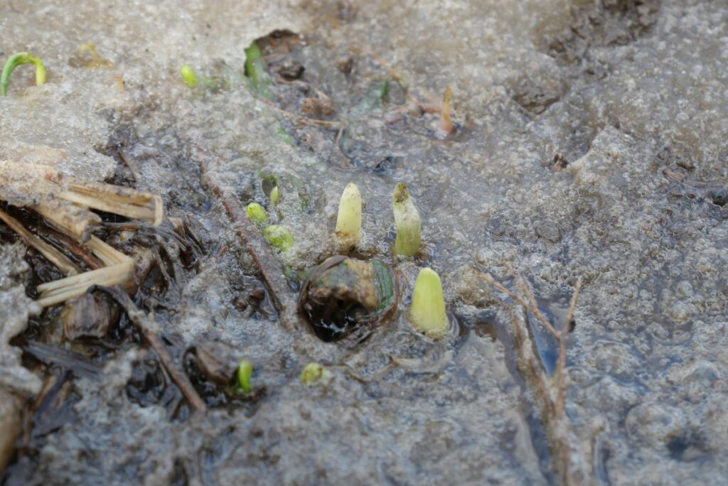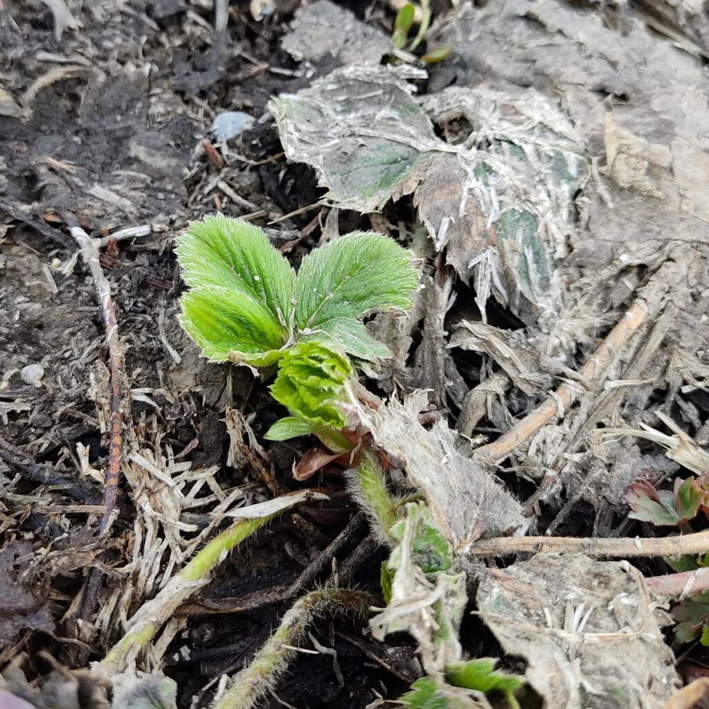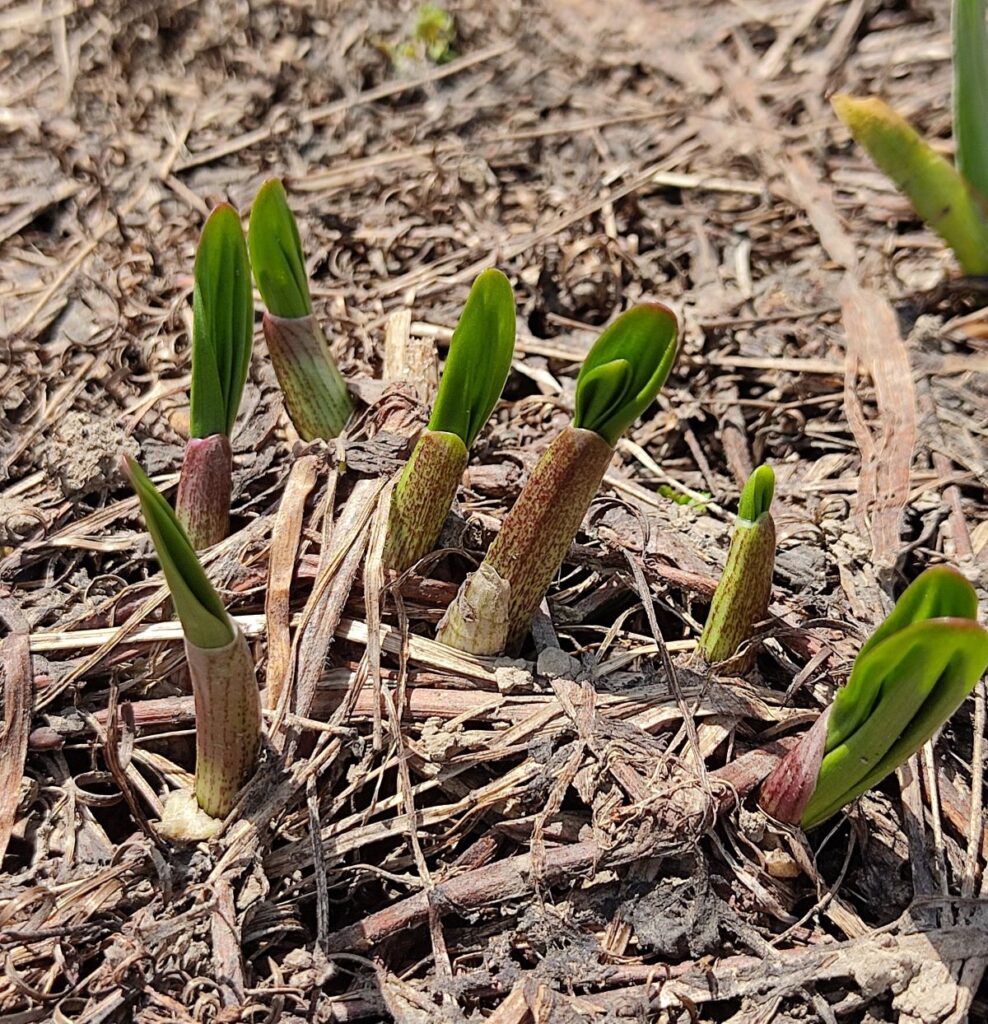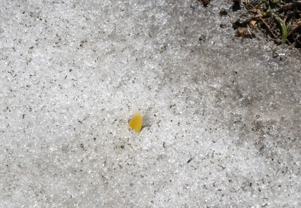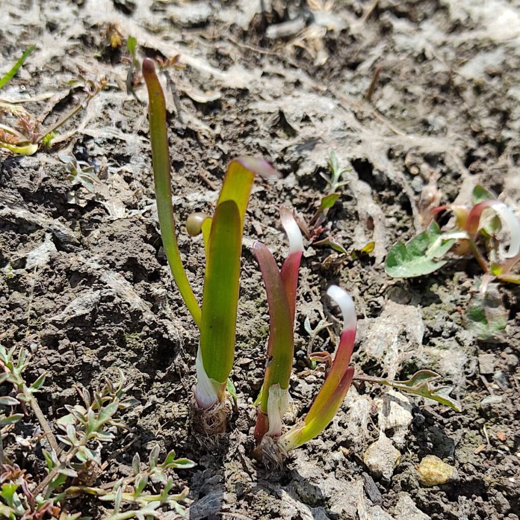 去年の秋、心を込めて植えたニンニクさんが雪から顔を出しているのを発見!