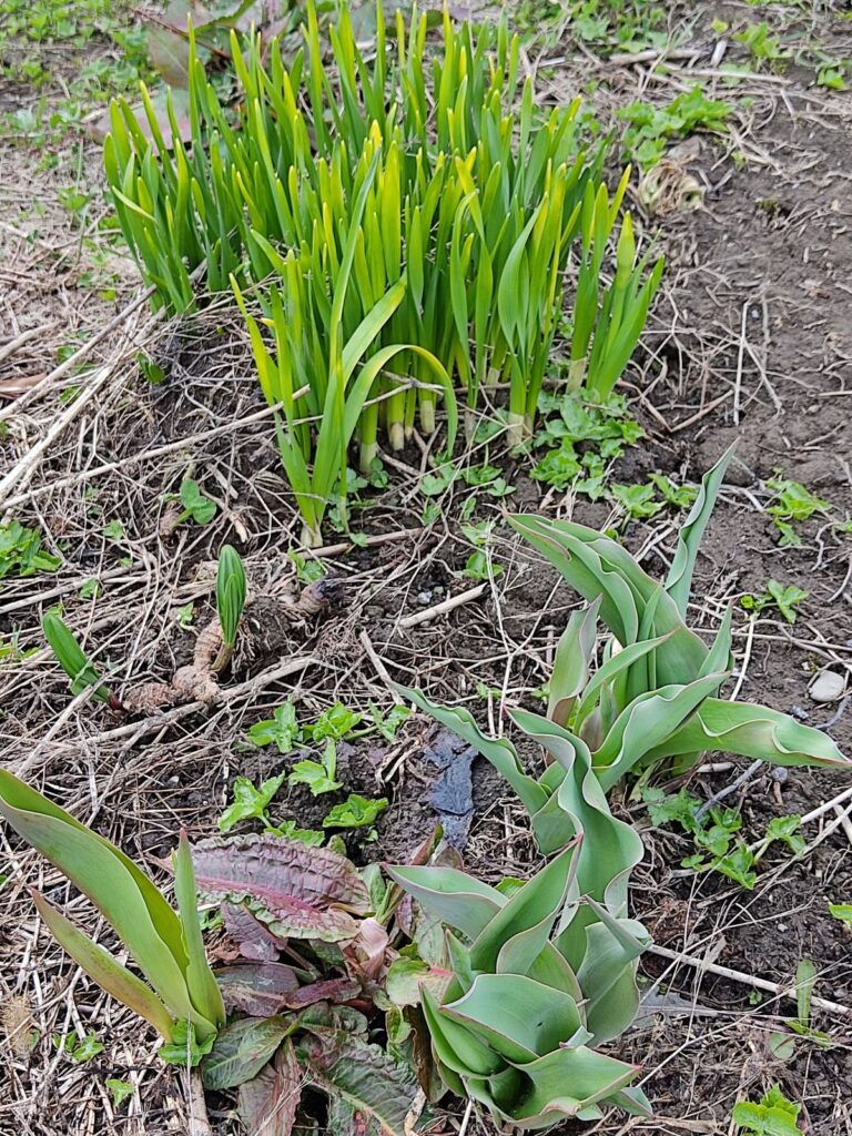 一週間後のスイセンさんとチューリップさんです。あと何日で開花するかな?