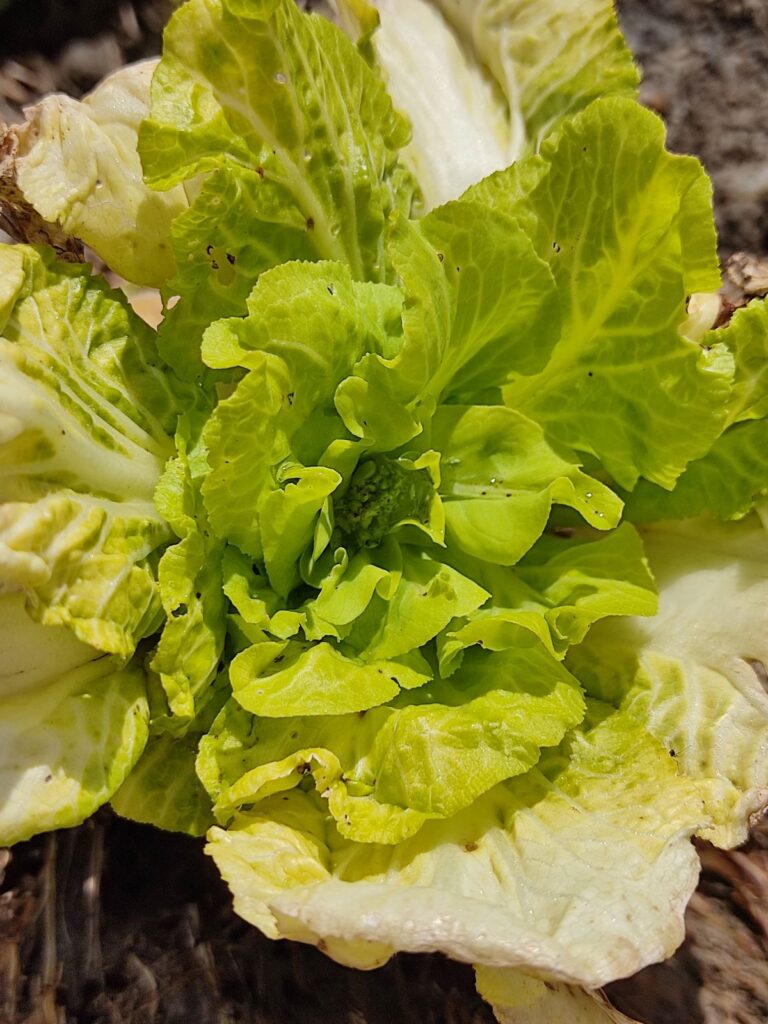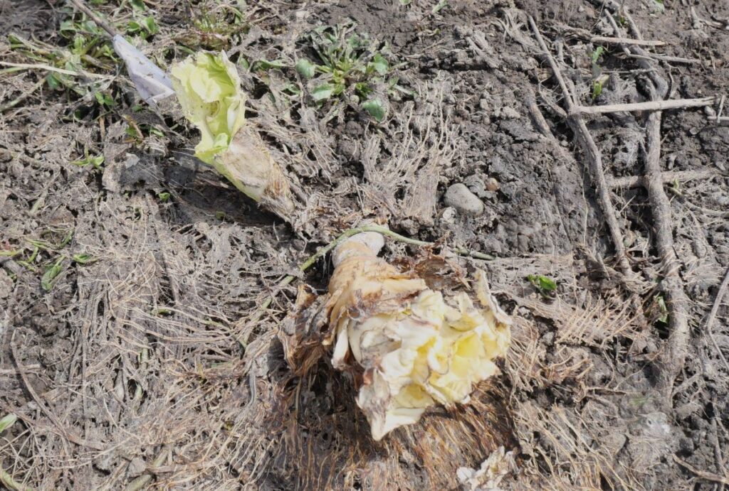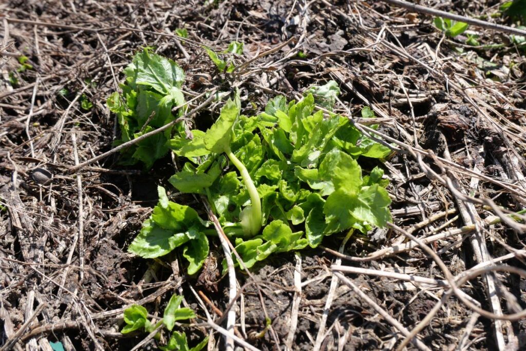 去年あえて残しておいたハクサイさん、重たい雪の下でちゃんと生き残ってくれていました。