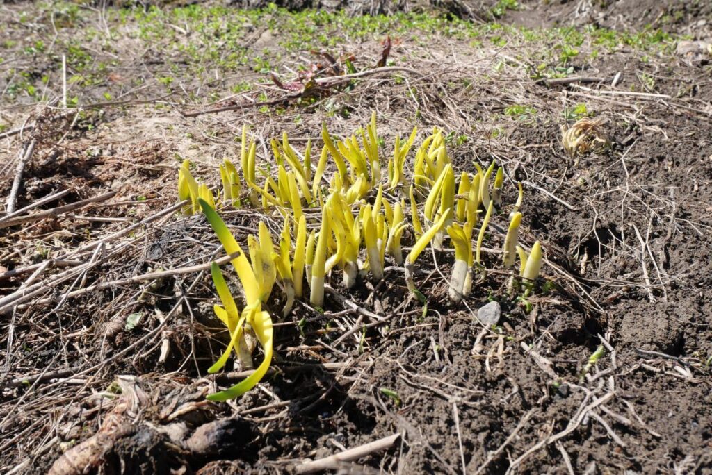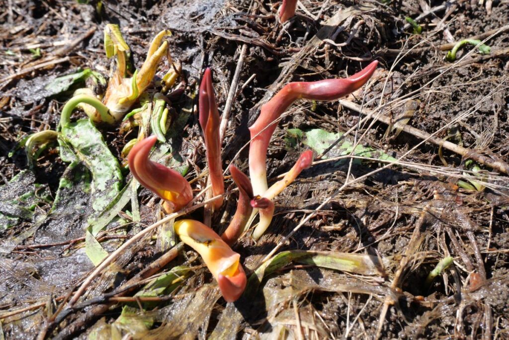 雪解け水の中からもう顔を出しているのは、ギョウジャニンニクさん!