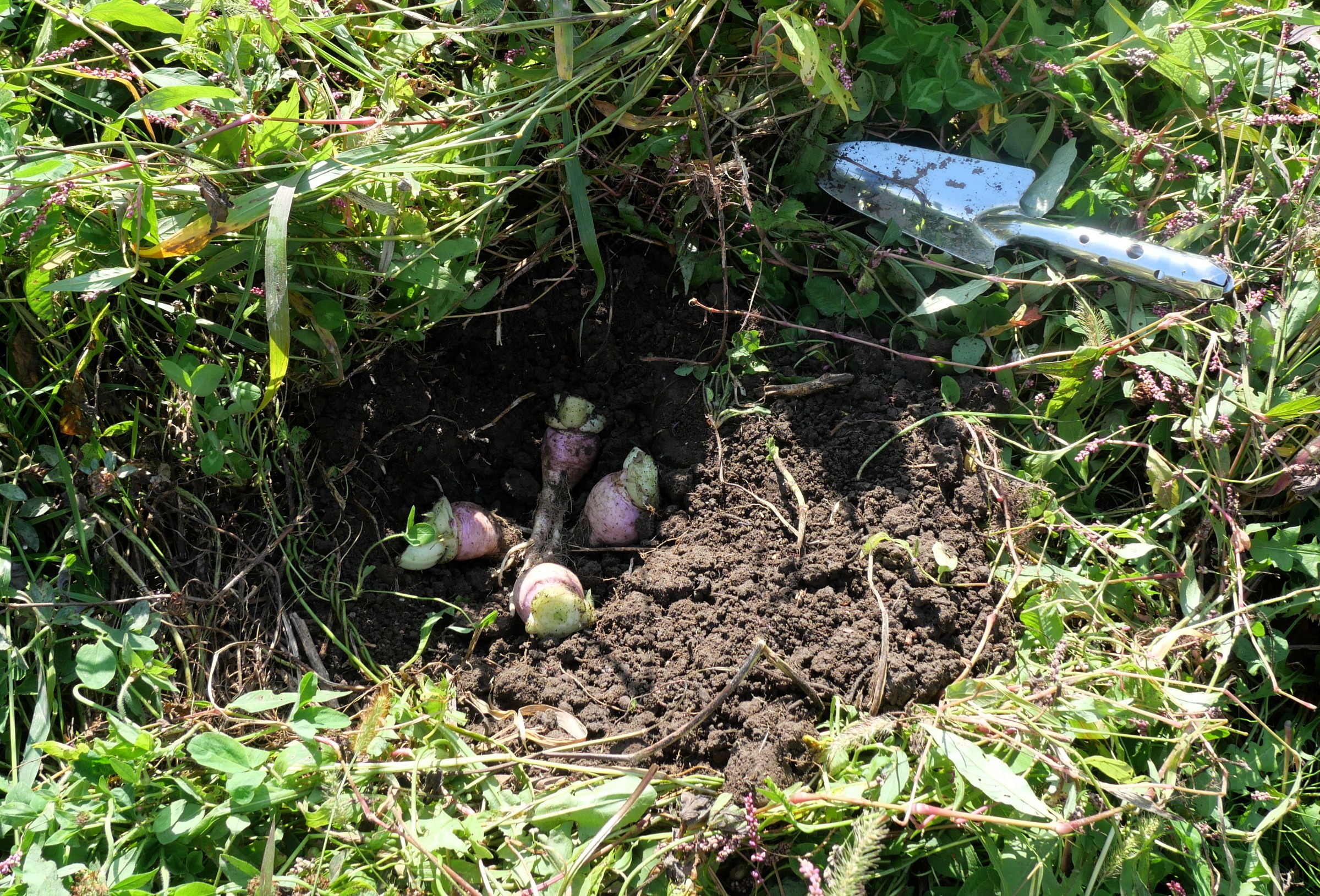 土に埋めているのは野沢菜の根っこの部分。野沢菜ってカブの一種なんですね。