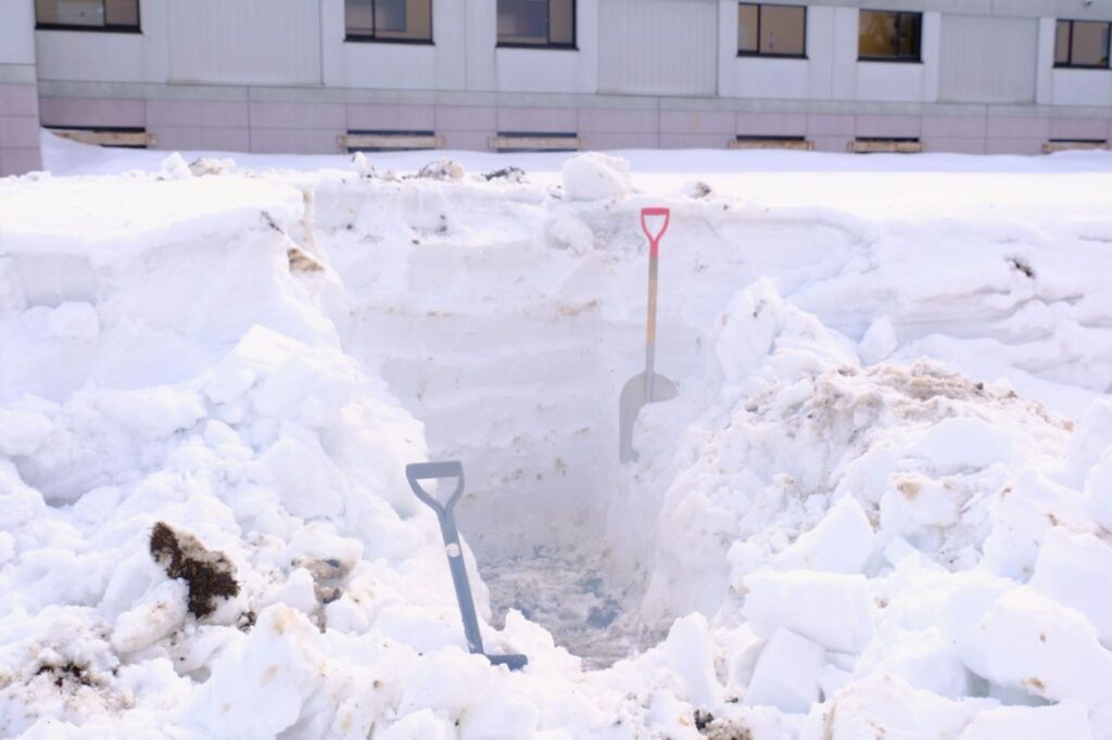 地面の雪を除去し、土を出しておけば土が温まり、雪解けを加速させるはずです。