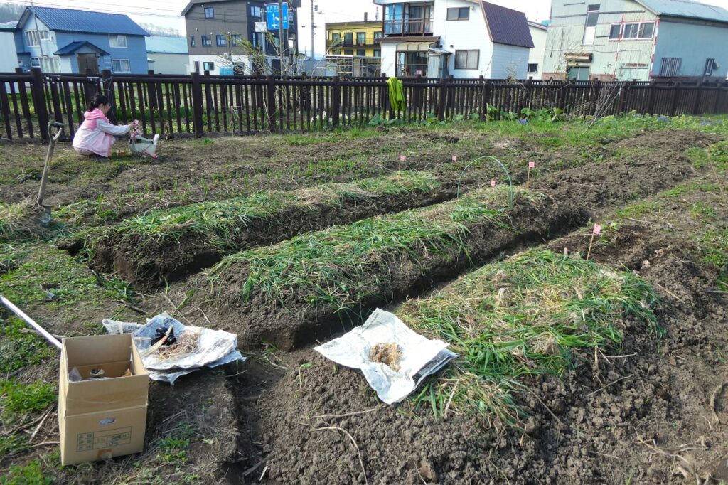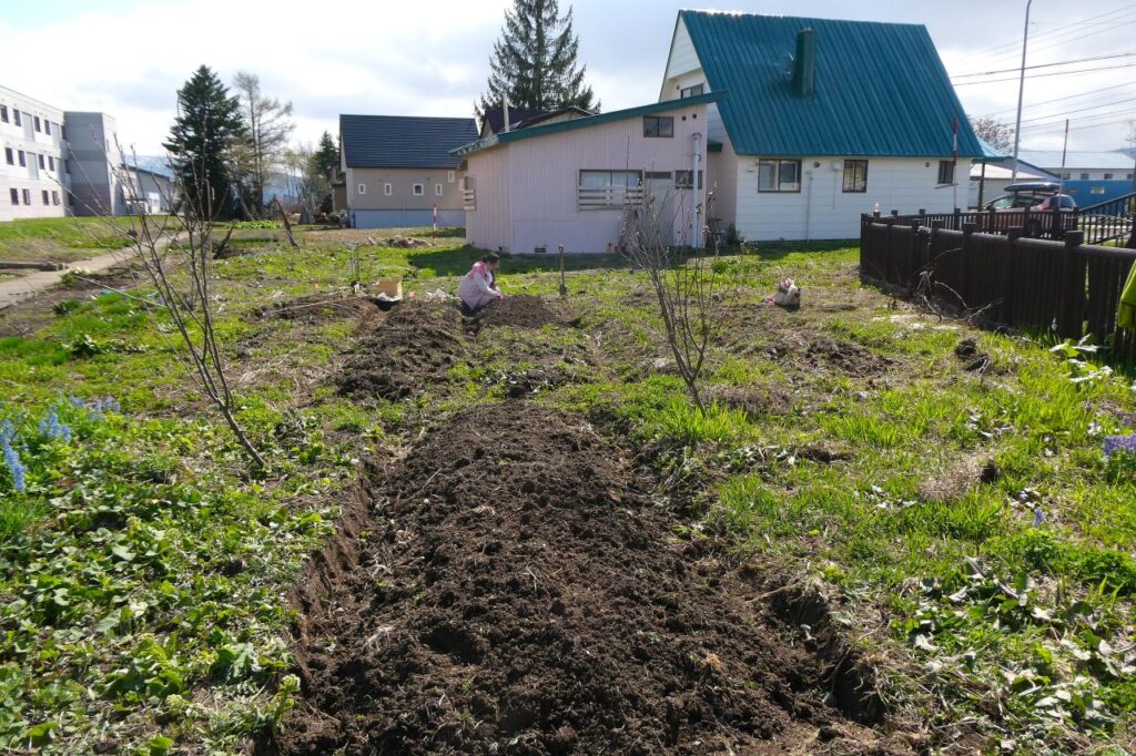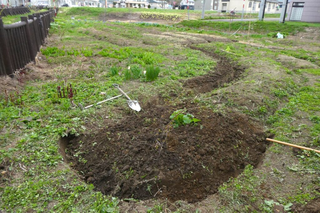 なので、畝が潰されてしまうので見地を掘って畝を整備するところから始まります。