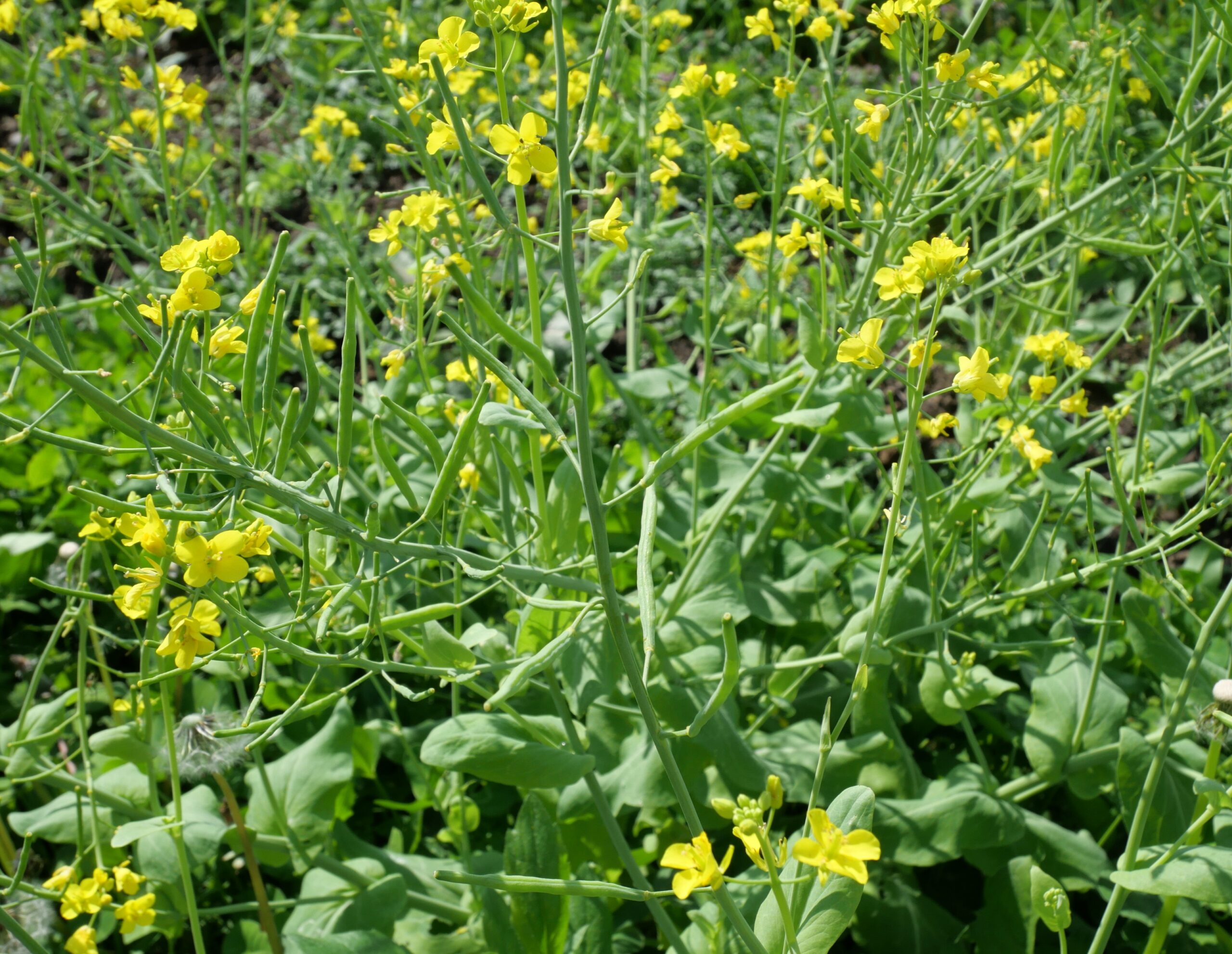 2025年6月8日 ハクサイの花とさや 研究所日記 2025.11.07 (2025年春から夏にかけて撮影した畑の写真をさかのぼってアップしています。) 5月下旬から咲き始め、どんどん大きく背が伸びて、未だに花を咲かせているハクサイさん。 よく見るとさやができ始めていました。