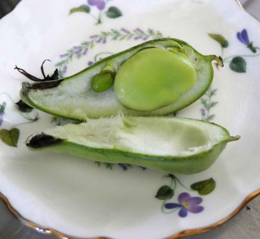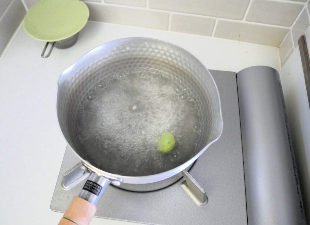 一塩水でゆでて、2人で1個のお豆を半分こして食べました。
