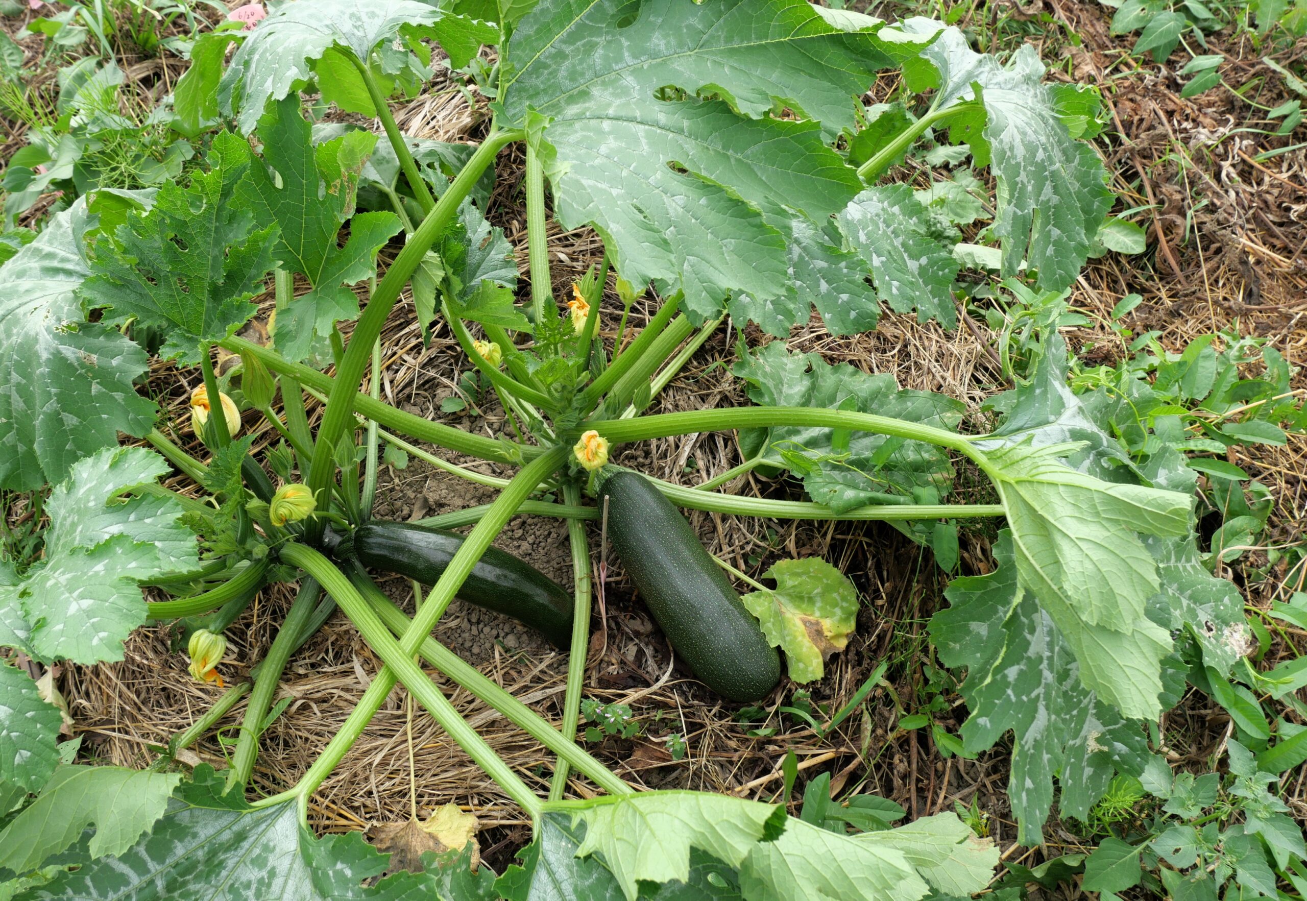 ズッキーニさんの最初の実が大きくなってきました。