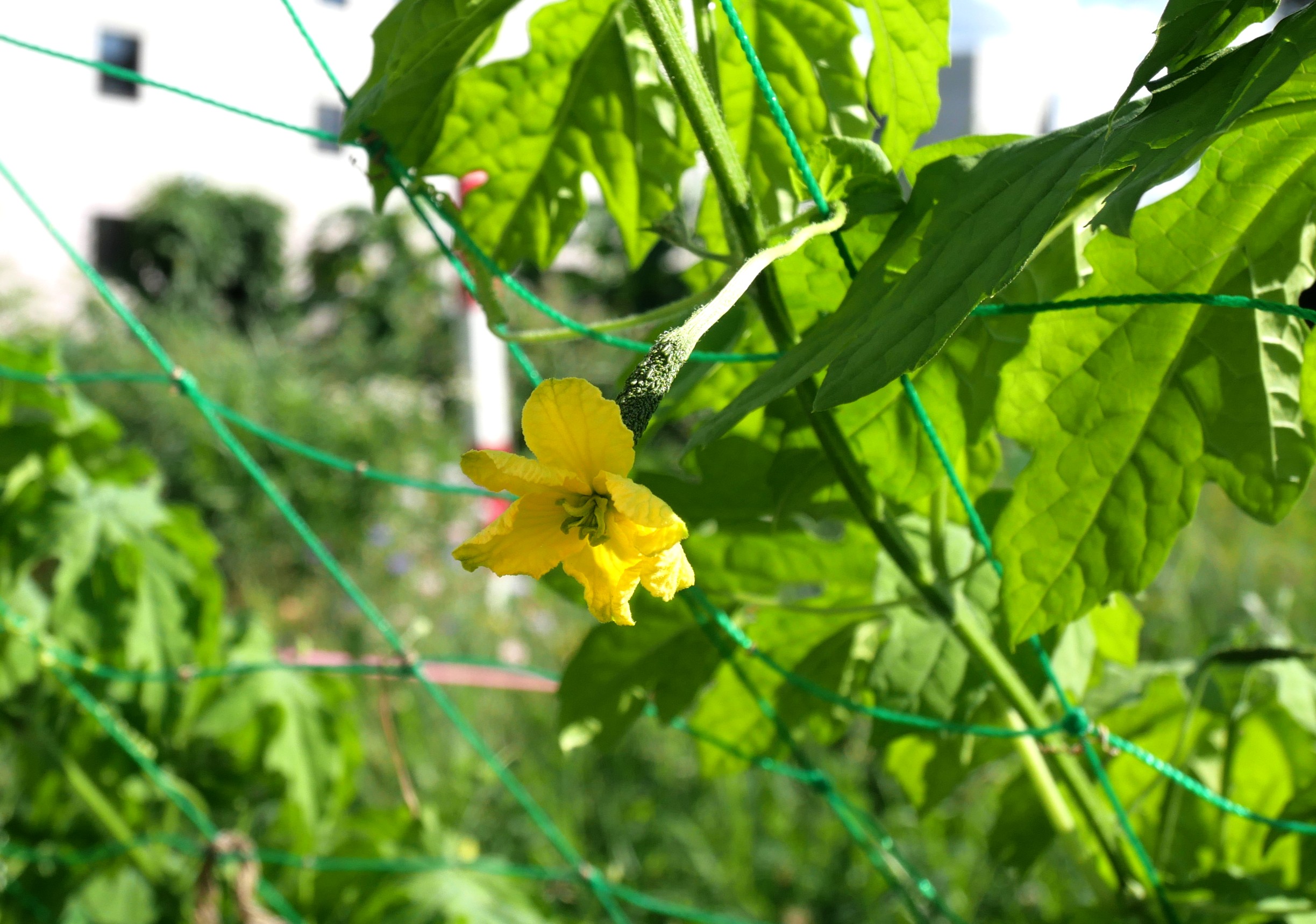 種から育てたゴーヤが花を咲かせ始めています。