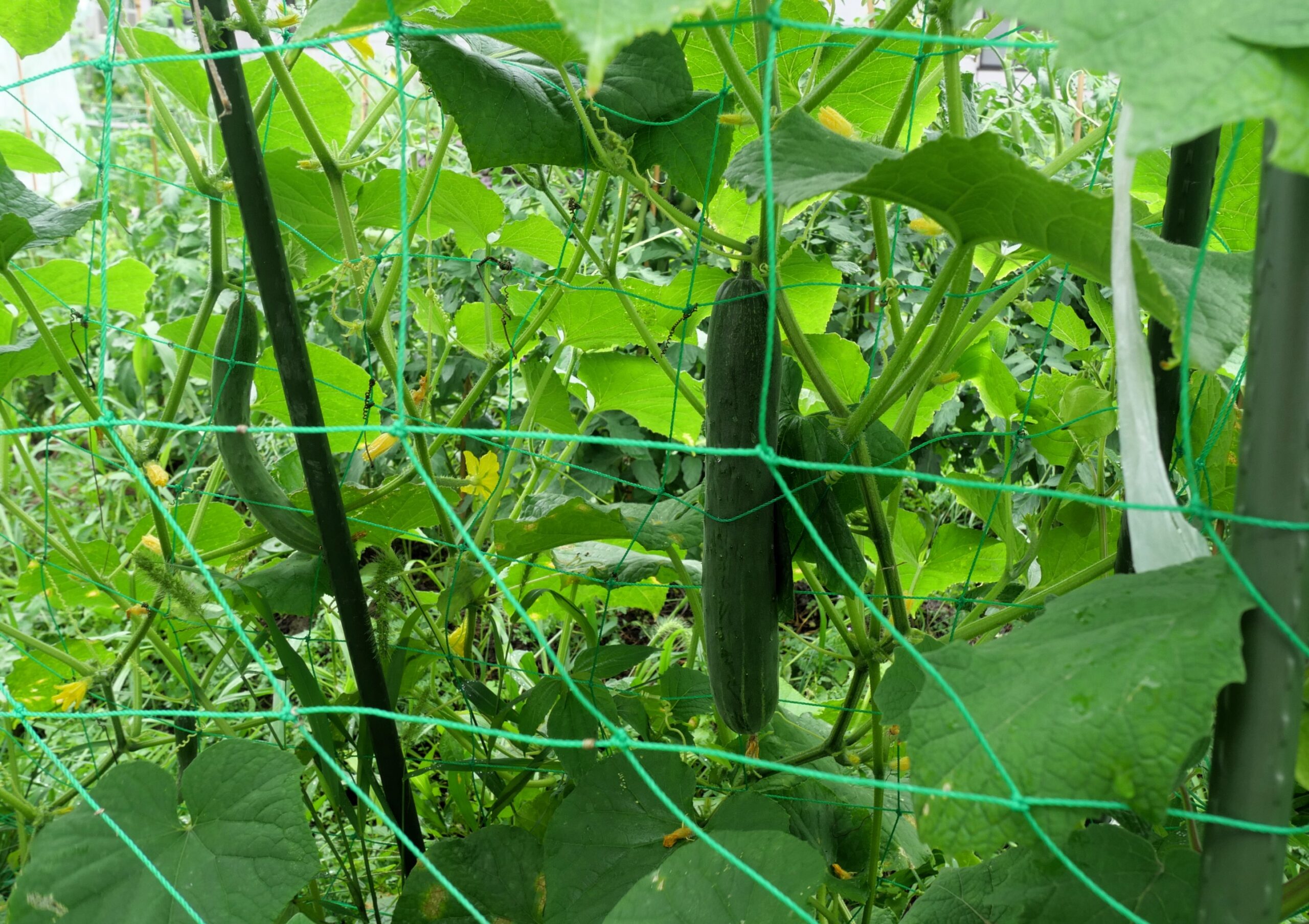 地這いだからと、去年は地を這わせていましたが、どこに生っているか分からず巨大になってしまうので、今年はちゃんとネットを立てました。