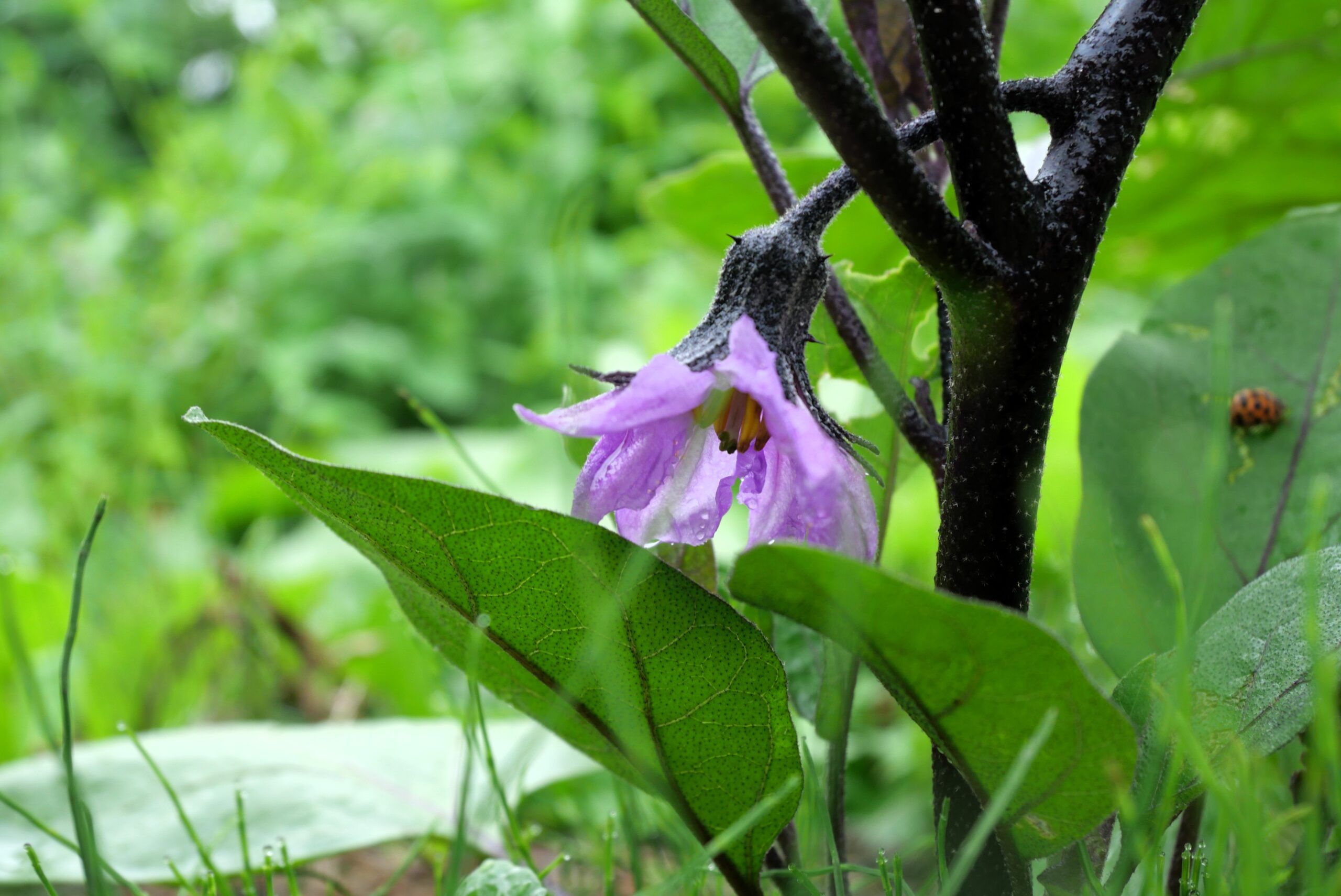 2025年8月8日 ナスの花が咲き始めました 研究所日記8/8 ナスの花 2025.08.24 (2025年春から夏にかけて撮影した畑の写真をさかのぼってアップしています。) 美しいですね~ 去年の種から育てた愛しのナスさんです。 8/8 ナス こんなに大きくて立派な葉をたくさん広げてくれて、嬉しい限りです。