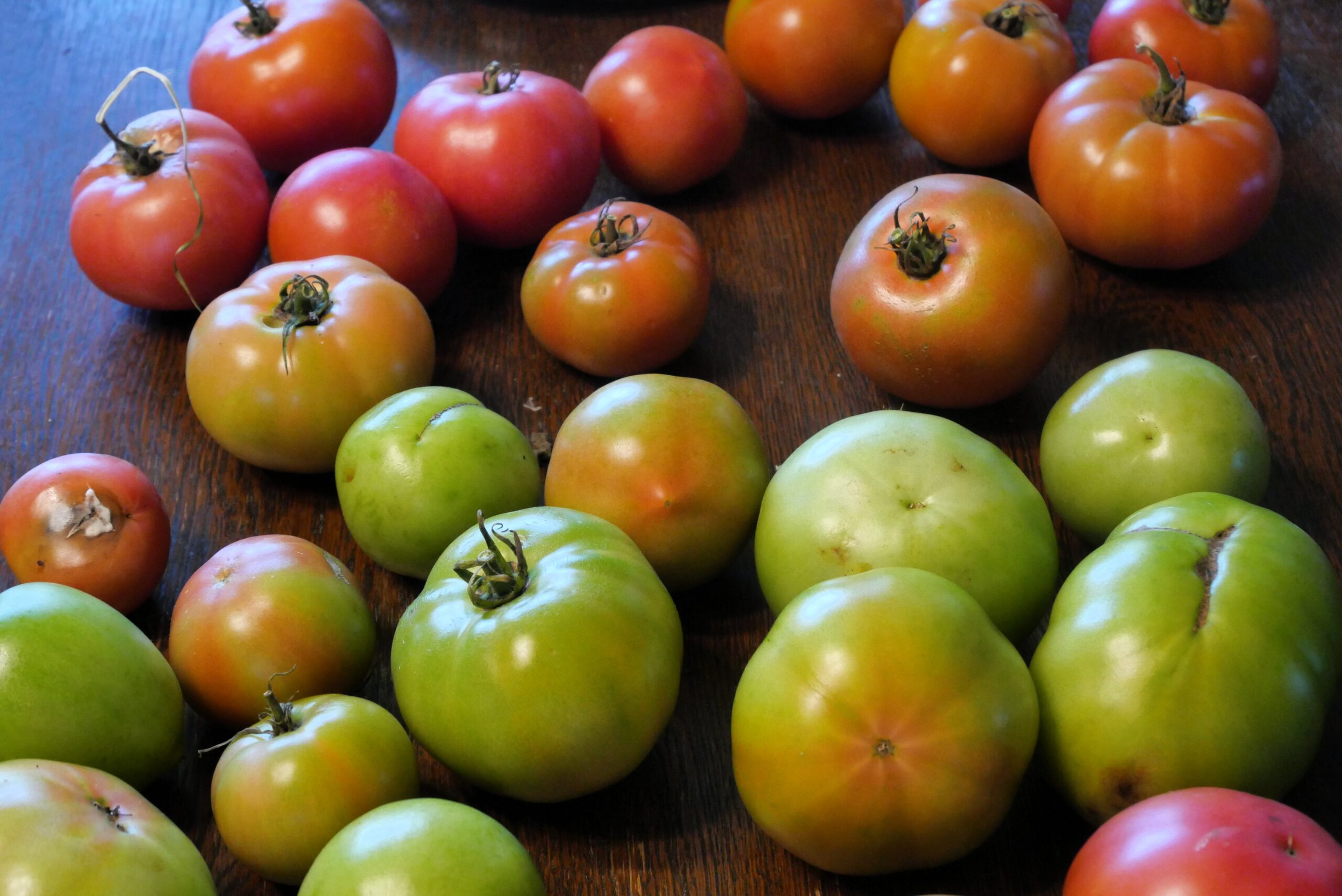 はじめは断腸の思いで大きくなった青い実をもいでその場に打ち捨てていたのですが、あれ、そういえば、スーパーに売ってるトマトは青いうちにもいでいるっていうじゃない?