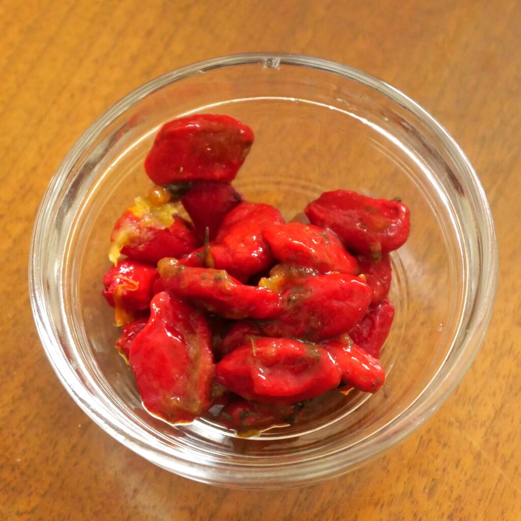 2025年9月19日 ゴーヤ 研究所日記 2025.09.25 ゴーヤの実が、ちょうどはじけたところの写真が撮れました。 種の周りの赤いところは甘いという噂を聞いてなめてみましたが、確かに甘かったです。 水洗しました。素晴らしい種が採れました!来年またよろしくね!