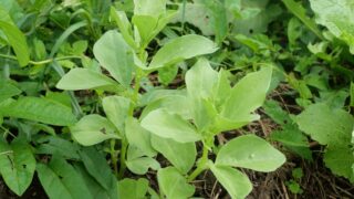 去年のこぼれ種があちこちから育っています。そろそろ収穫しても良さそう?